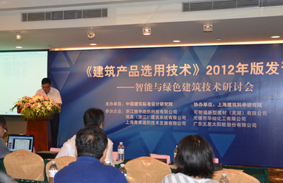 2012年9月5日,由中国建筑标准设计研究院建筑产品应用技术研究所(以下简称“标准院产品所”)主办的“智能与绿色建筑技术研讨会”在上海召开,会上2012版《建筑产品选用技术》正式发刊。