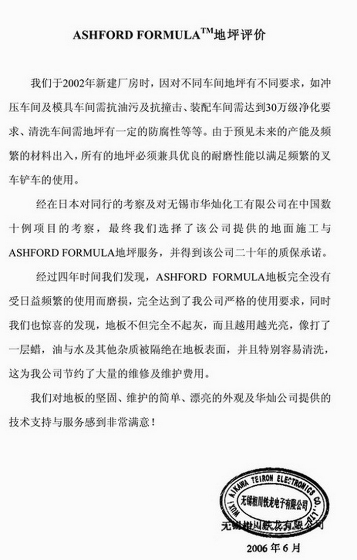 相川铁龙电子有限公司感谢函